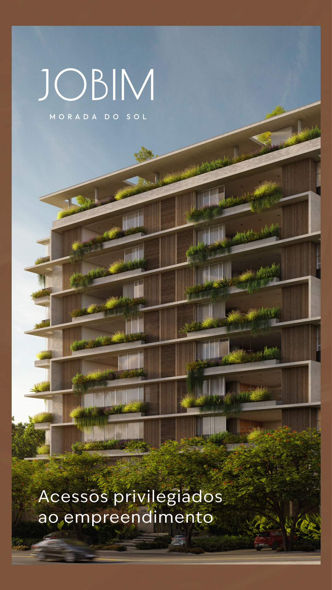 Criação de identidade visual e materiais digitais para eventos e lançamentos imobiliários. Projetos desenvolvidos para os empreendimentos Jobim e Leblon.